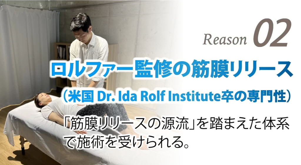 「筋膜リリース」の先駆けであり、身体の構造を整える世界的なメソッドです。 当スタジオは、そのロルフィングの専門家(ロルファー)が監修した筋膜整体を提供しています。