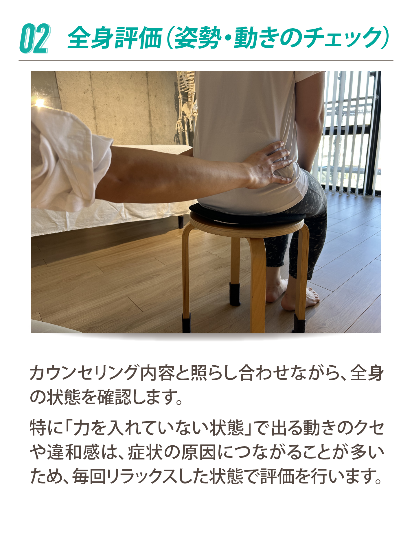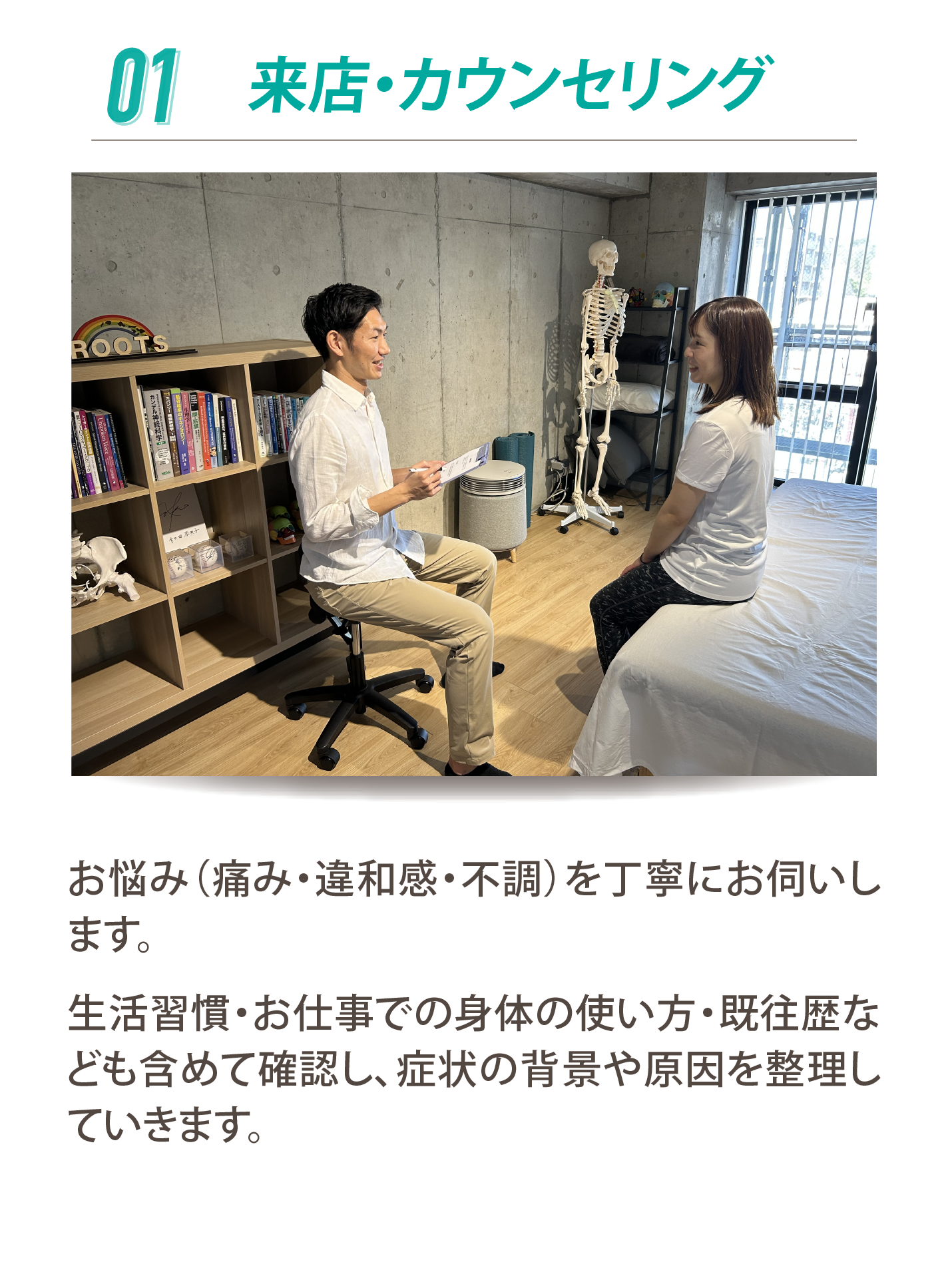 そのため、回数券の押し売りや、無理な勧誘などは一切行いません。初回に身体の状態を詳しくチェックしたうえで、最適なプランをご提案します。「まずは1回試してから考えたい」という方も大歓迎ですので、どうぞリラックスしてお越しください。