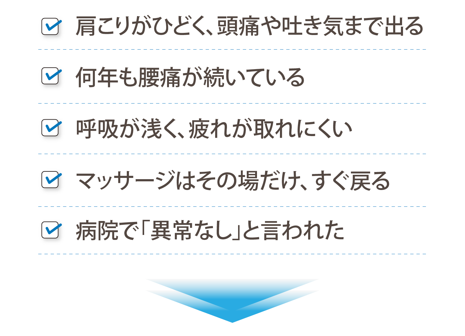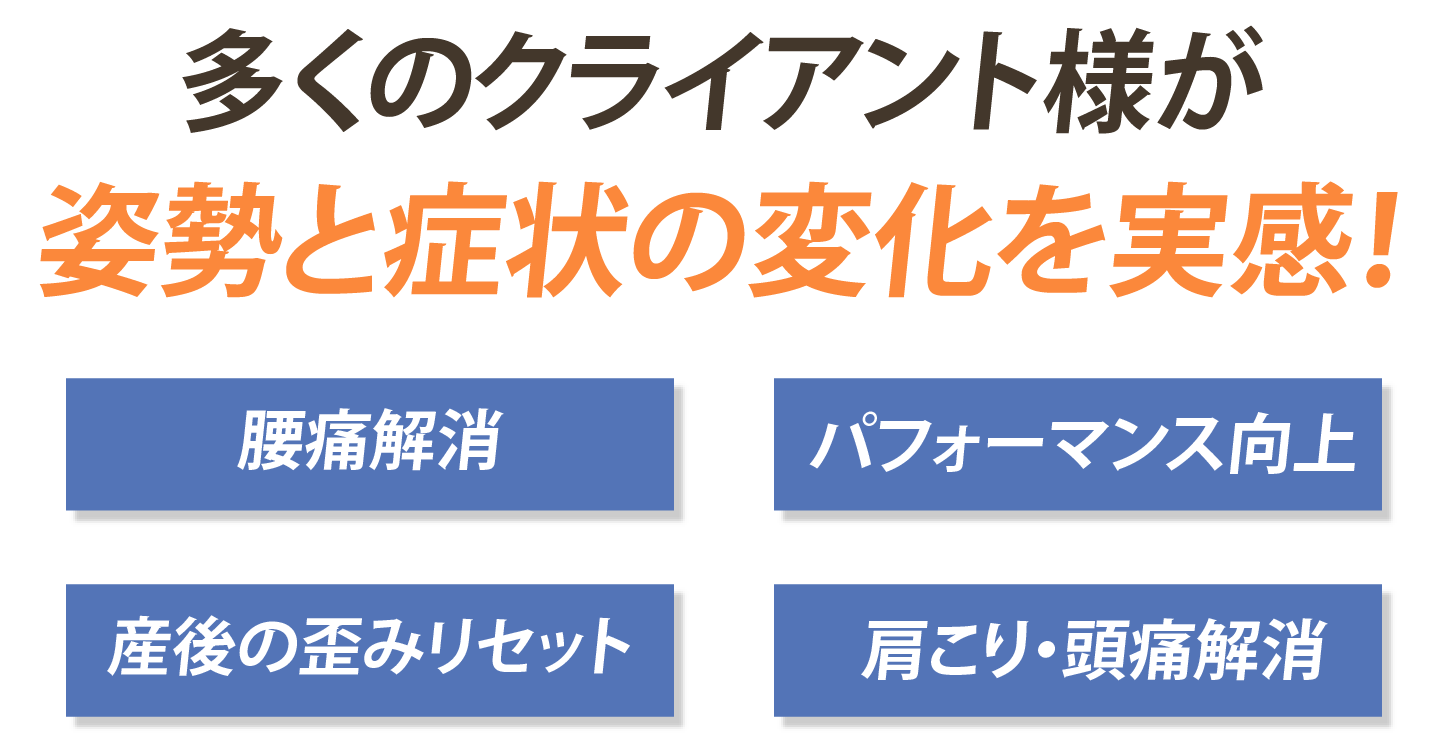 多くの方が、1回の施術でも身体の変化を実感されています。ただし、改善のスピードや程度には個人差があります。